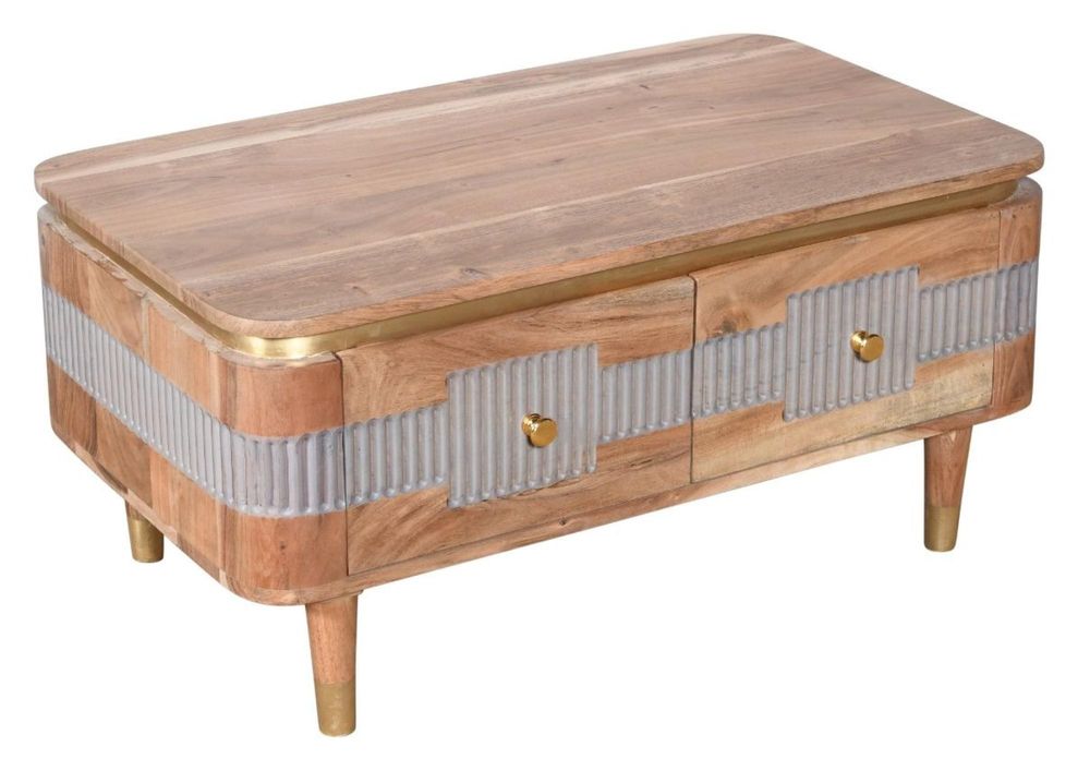William Acacia Ribbed with Gold Trim Storage Coffee Table