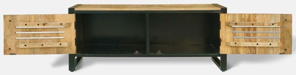 Item Code: FRC-3 To make your in-house brunch and coffee dates perfect, we bring this Vellore Range Coffee Table carved in mango wood top and black iron legs. It comes with two compartments for additional storage providing plenty of space beneath.