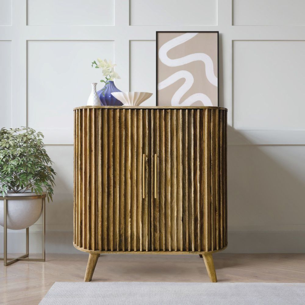 Slated Mango Wood Small Sideboard - 2 Doors
