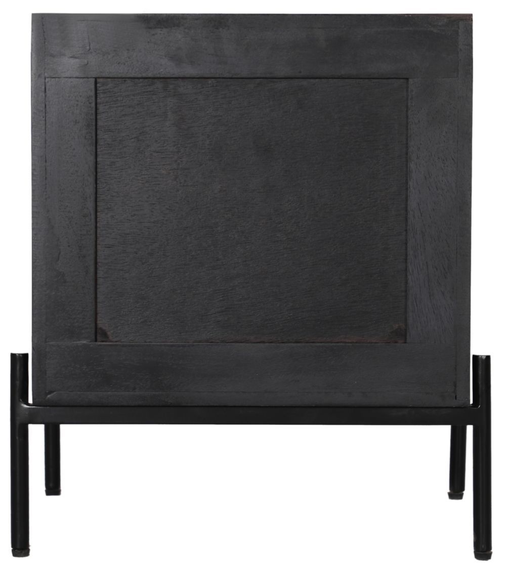 Tapola Black Wood and Rattan 2 Drawer Bedside Cabinet