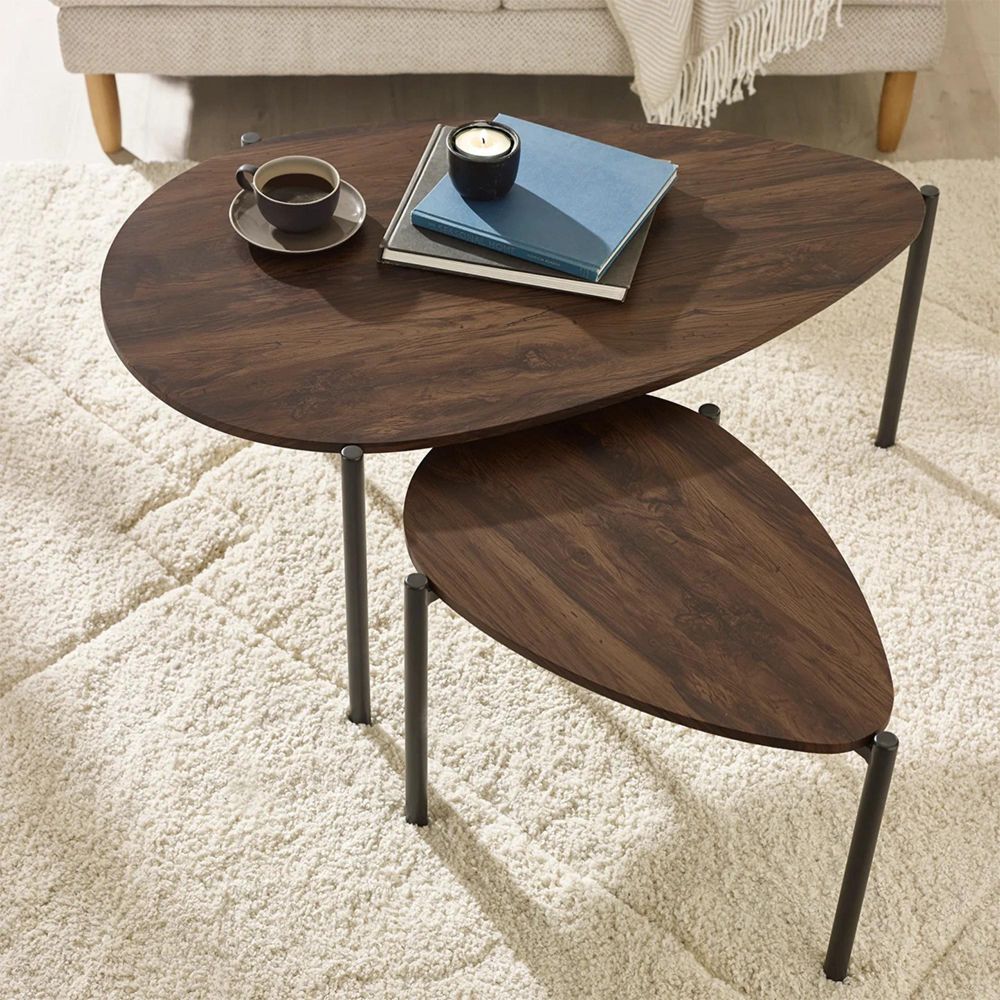 Lorette Nest of 2 Coffee Tables - Teardrop - Walnut