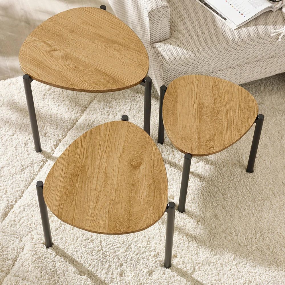 Lorette Nest of 3 Side Tables - Teardrop - Oak