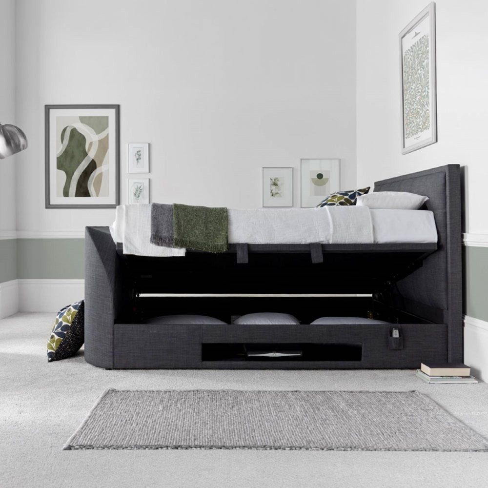 Falmer Ottoman Storage TV Bed - Pendle Slate Dark Grey Fabric - Sizes Available