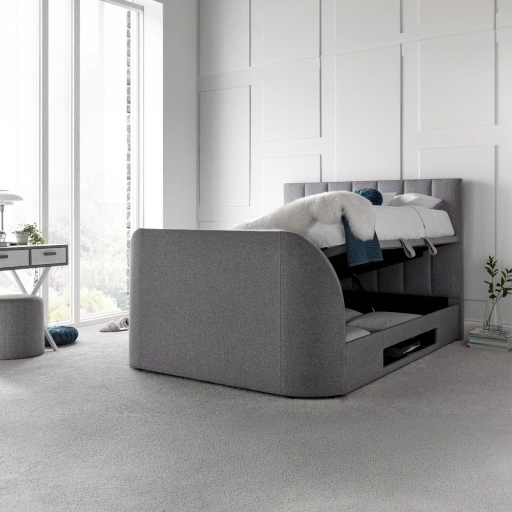 Medway Ottoman Storage TV Bed - Marbella Grey Fabric - Sizes Available
