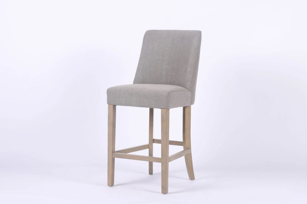 Item Code: ROSASTOOL This contemporary counter stool has a simple yet transitional look. It is made with a natural linen fabric covering and a sand-colored legs for an elegant look. The padding offers great comfort and the upholstery is easy to clean. Sturdy and durable, solid in pairs for added stability. The perfect addition to your home.