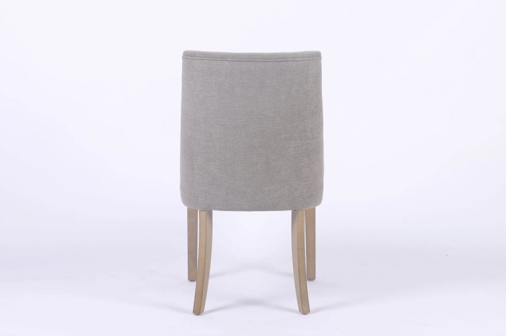 Item Code: ROSACHAIR This dining chair is a classic combination of luxury and comfort. Crafted with a solid wood frame upholstered in the softest sand linen, it has a supportive back, padded seat and armrests for ultimate relaxation. It's perfect for any decor and will complement your dinner parties and family meals.