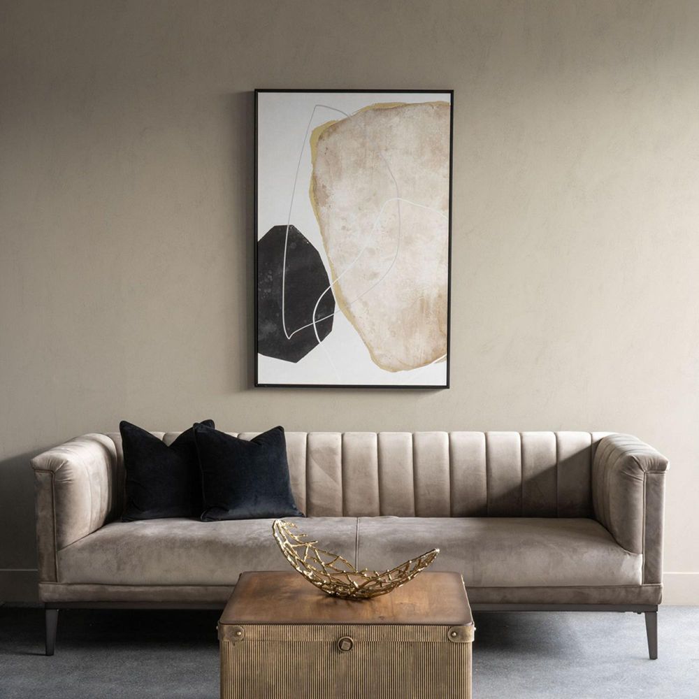 Item Code: 705461 Dive into the realm of abstract art with our elegantly wooden framed abstract canvas, where geometric patterns in shades of black, white, and grey converge to create a mesmerizing visual symphony. This modern masterpiece, adorned with a hint of gold foil, seamlessly integrates into any decor.Free Delivery