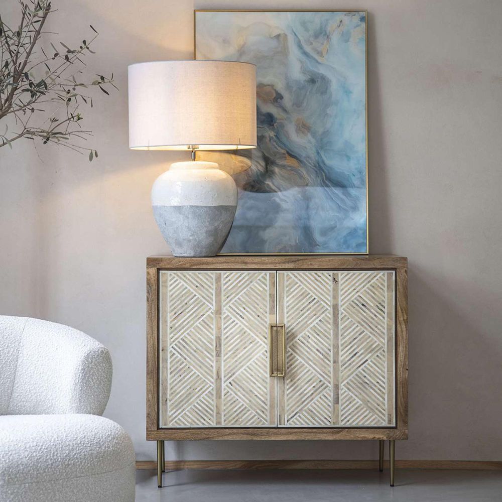 Item Code: 703168 An elegant statement piece, this oversized table lamp features a curvaceous urn-shaped base crafted from porcelain and finished in a soft grey ceramic glaze. Its gently textured surface and two-tone design bring a sense of artisanal character, while the natural variances in finish make each lamp truly unique. Paired with a round white linen shade, this timeless design complements both classic and contemporary interiors with ease.Free Delivery