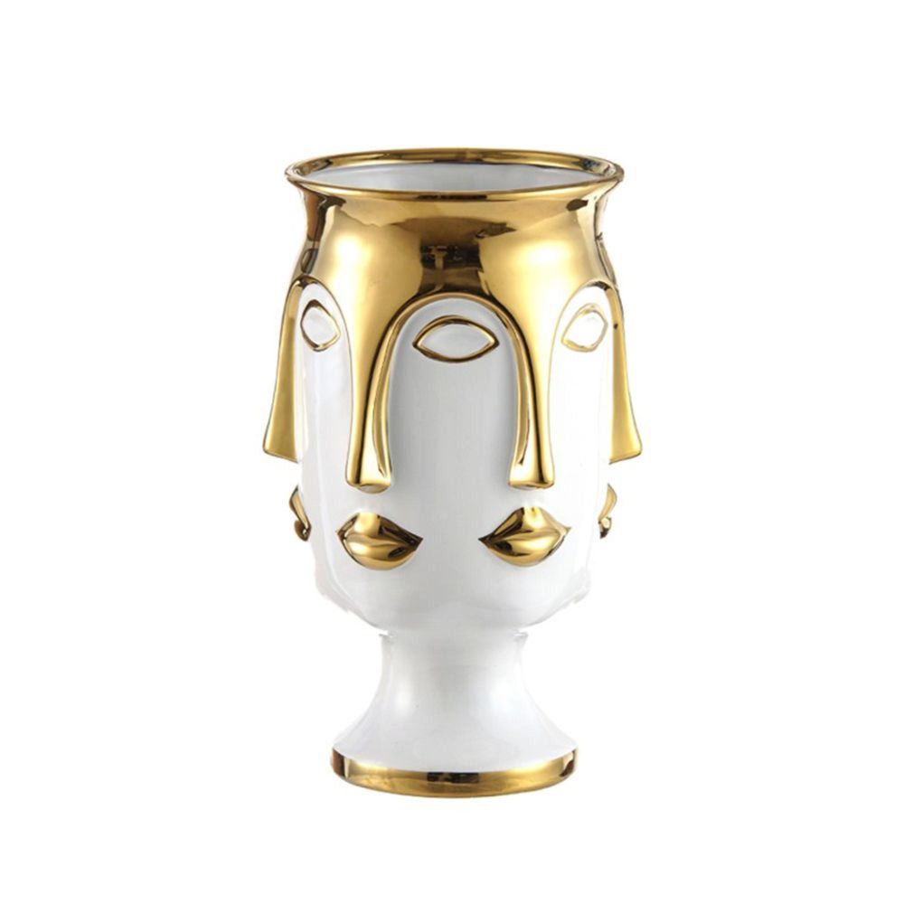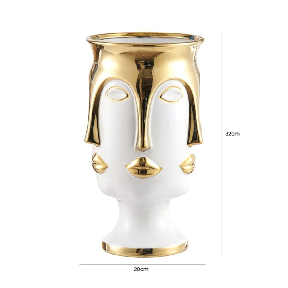 Item Code: SPVS471-00-WHGD This 32cm White and Gold Face Ceramic Vase is a stunning blend of modern elegance and artistic charm. Its sleek white finish is beautifully accented with shimmering gold details, creating a striking centerpiece for any room. Perfect for displaying fresh flowers or as a standalone decorative piece, it adds sophistication to your living space. Crafted from high-quality ceramic, this vase is both durable and stylish, making it an ideal gift or personal accent. Its unique design effortlessly complements contemporary and classic interiors a like.Please note that the product color and finish may slightly vary from the images due to lighting and screen differences.Free Delivery