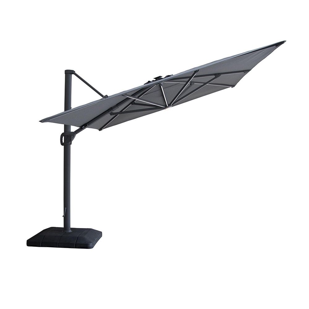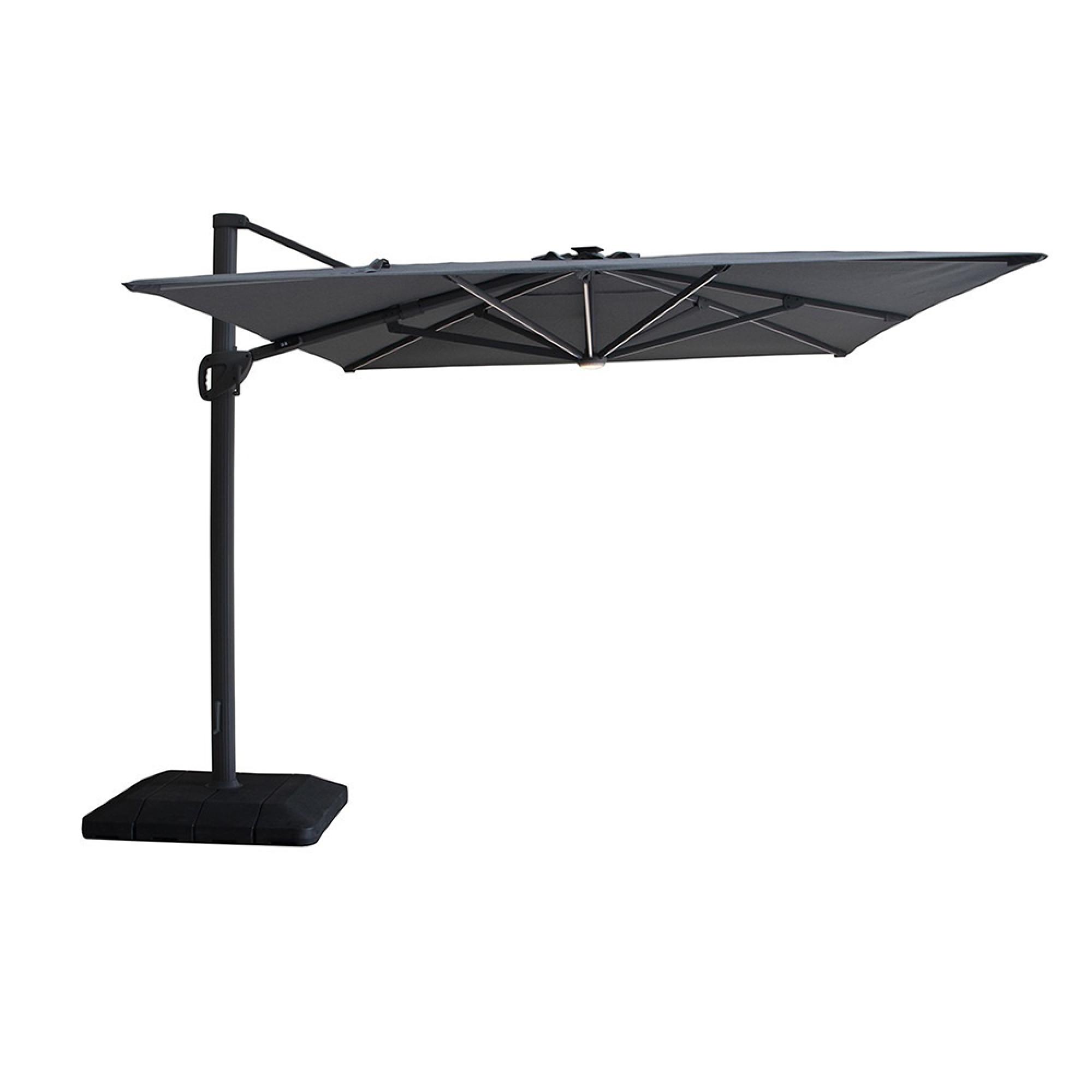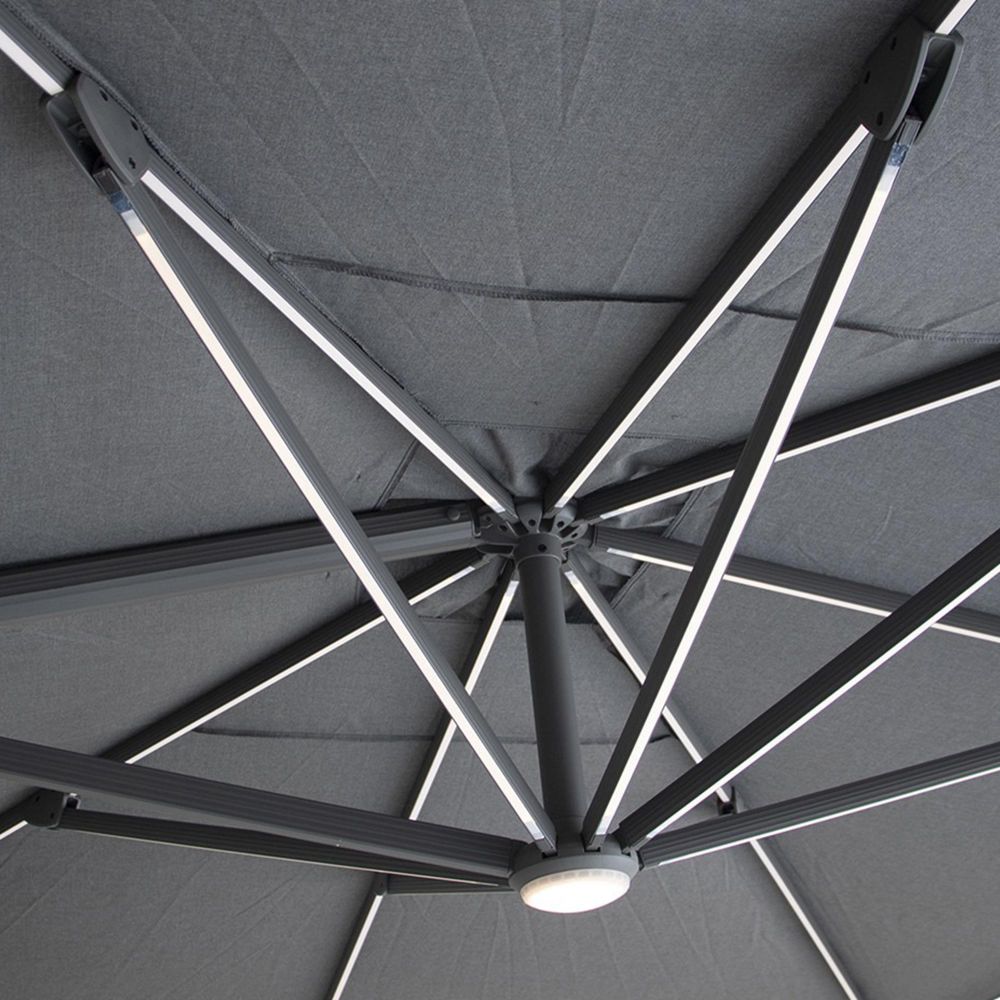 Aramis LED Outdoor Cantilever Parasol - 3cm x 4cm - with Base - Charcoal Grey