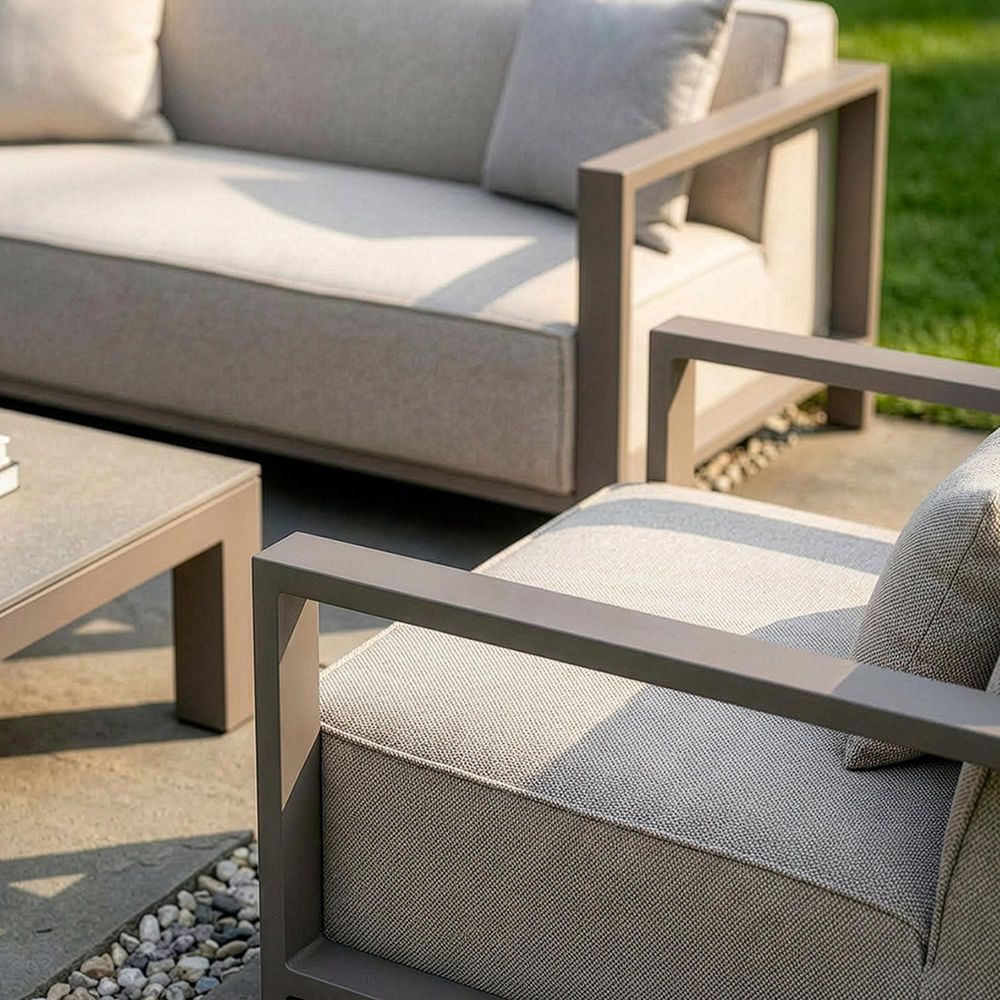 Item Code: FB-IBIZ-3SS-LAT Our Maze Ibiza 3-seater garden sofa set with square coffee table in a two tone zinc grey colour fixed cushions brings all the style credentials in abundance whilst matching this with the properties of truly waterproof garden furniture. This is thanks to the all weather fabric which has been performance engineered to ensure it can be left outside all year round, which is the same for our entire outdoor fabric garden furniture.This Maze Ibiza 3 seat sofa set has been designed as a fully upholstered sofa which has been designed for both functionality and comfort. The ultra quick dry cushioned seats have been upgraded with additional fillings for added comfort. Over this we have overlaid the durable all weather zinc grey colour fabric, resulting in a chic, modern outdoor garden sofa set which is able to withstand the entire year outside in the UK climate.Set Includes