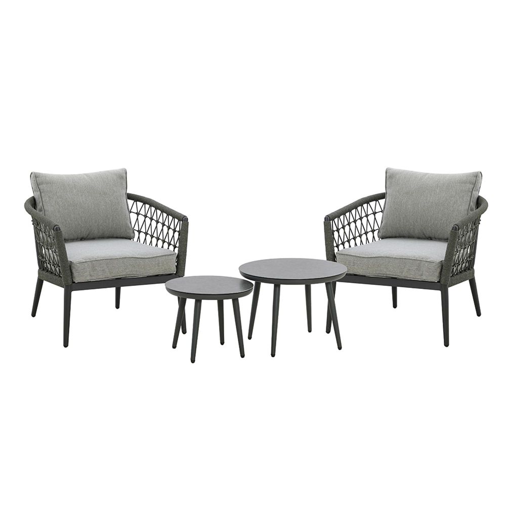 Elevate your outdoor space into a luxurious haven with the Maze Monaco Lounge Set. The 2 individual armchairs are paired with contemporary round nesting tables that seamlessly suit any indoor or exterior setting whether that's an orangery, conservatory, or modern garden room.