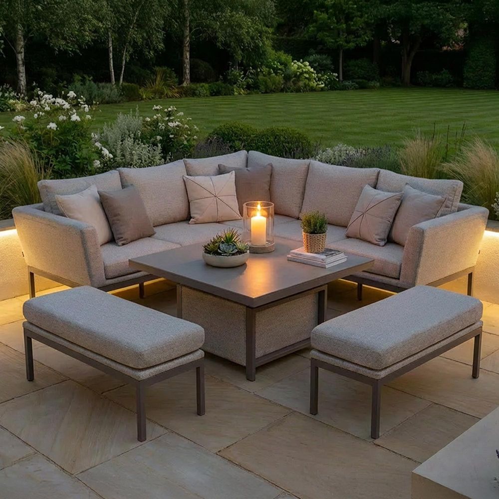 The popular Pulse Range has added the compact corner sofa, the Pulse Square Dining carries all the traits of the Pulse Corner Dining, with sumptuous back and base cushions, as well as simple yet strong legs that help create the refined, fuss-free look and feel. The set comes with the square rising table feature, transfer your L shaped corner sofa from a casual dining experience into a relaxed setting. Made from high performance outdoor fabric and materials, the corner sofa is designed to be outside all year round. Prepare your garden in time for Spring with a simple jet wash and leave your set to dry in the warming sun ready for months of use during the warmer season.