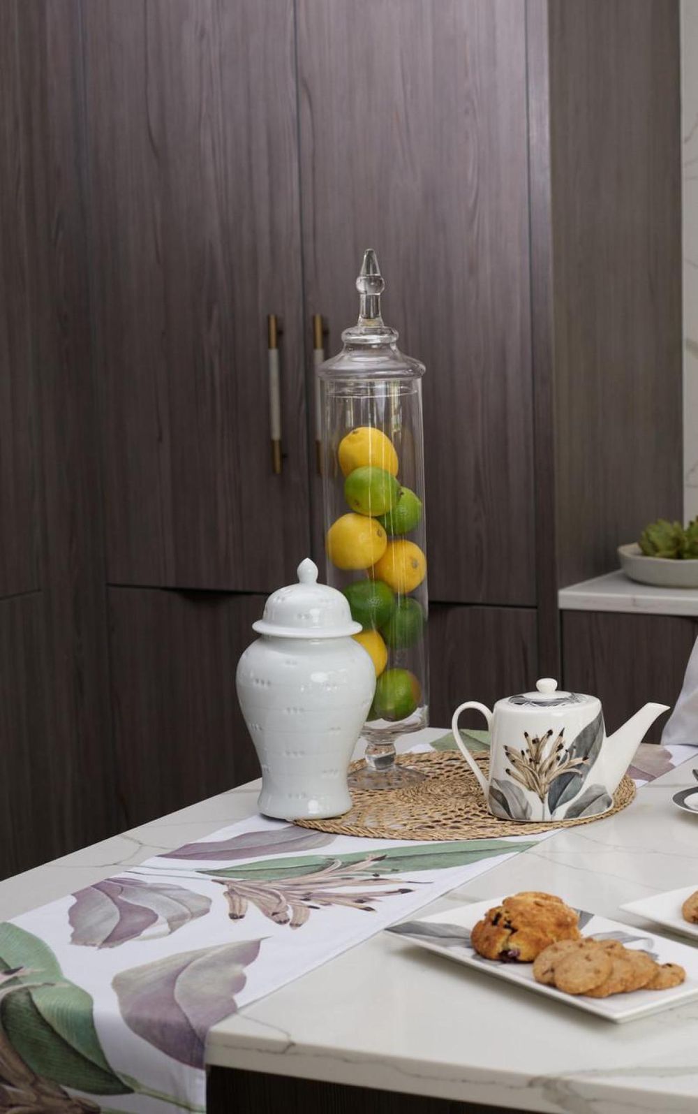 A beautiful table runner. Inspired with classic shades of green, gold & grey. Ideal house warming gift, new home, birthday, or general occasion. Part of the Birds Of Paradise Collection.