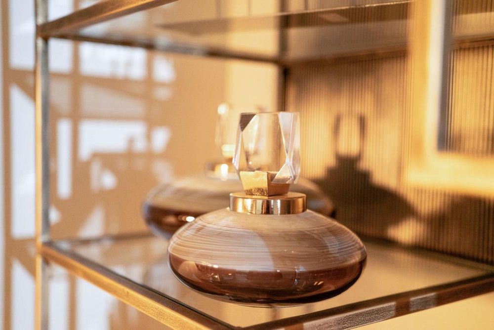 Indulge in the essential allure of our Sai jars, an imperative addition to your collection of lavish styling accessories. Available in both a large and small, these jars unveil a captivating transition from rich brown to subtle light grey in a sophisticated ombre effect. Crowned with a resplendent gold lid adorned with a crystal embellishment, they manifest a stunningly stylish impact. Elevate your styling experience with these indispensable artifacts, ensuring an unparalleled level of sophistication.