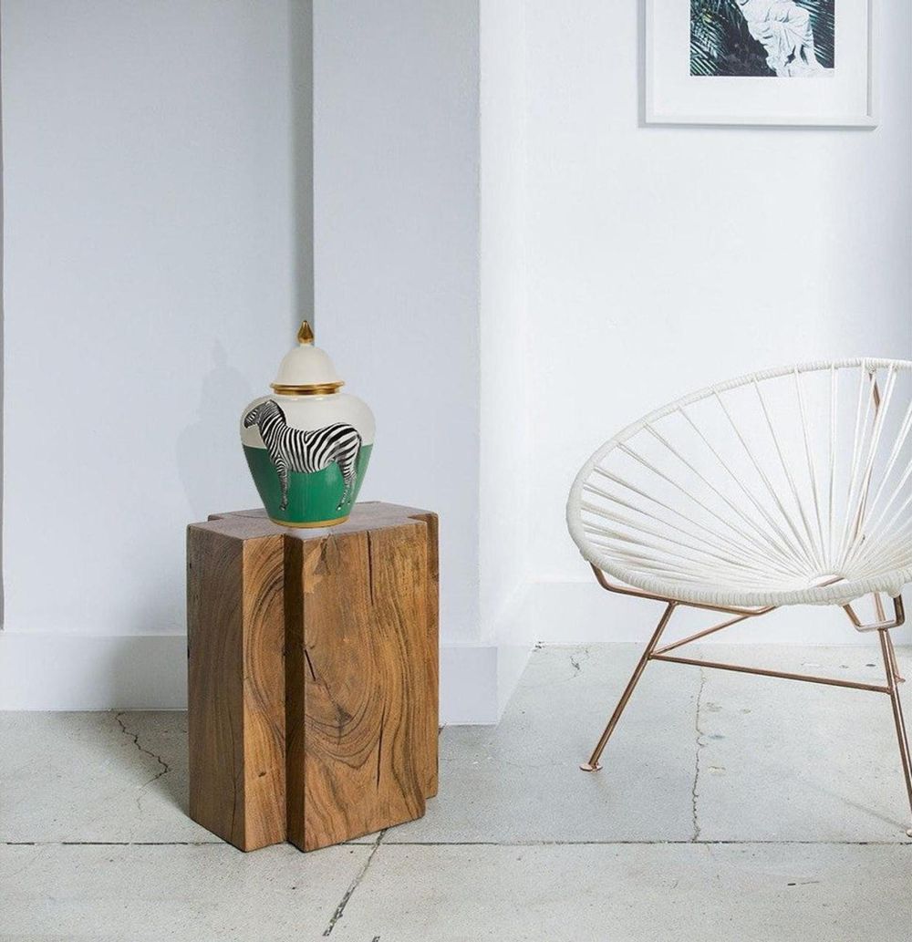 Zebra Porcelain Jar - White, Green and Black - Small - Set of 2