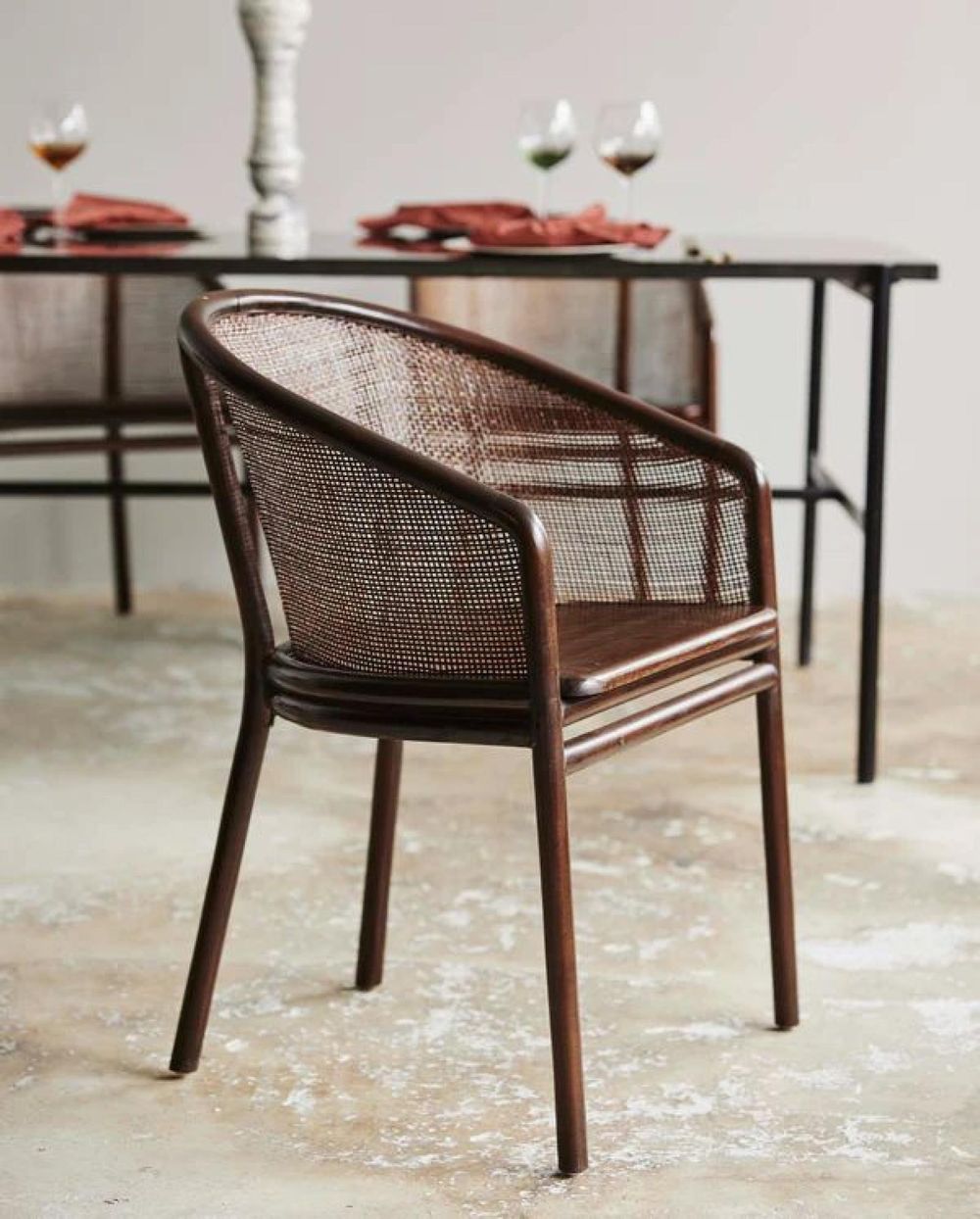 2 x Mosso Dark Brown Teak Wood and Rattan Dining Chair