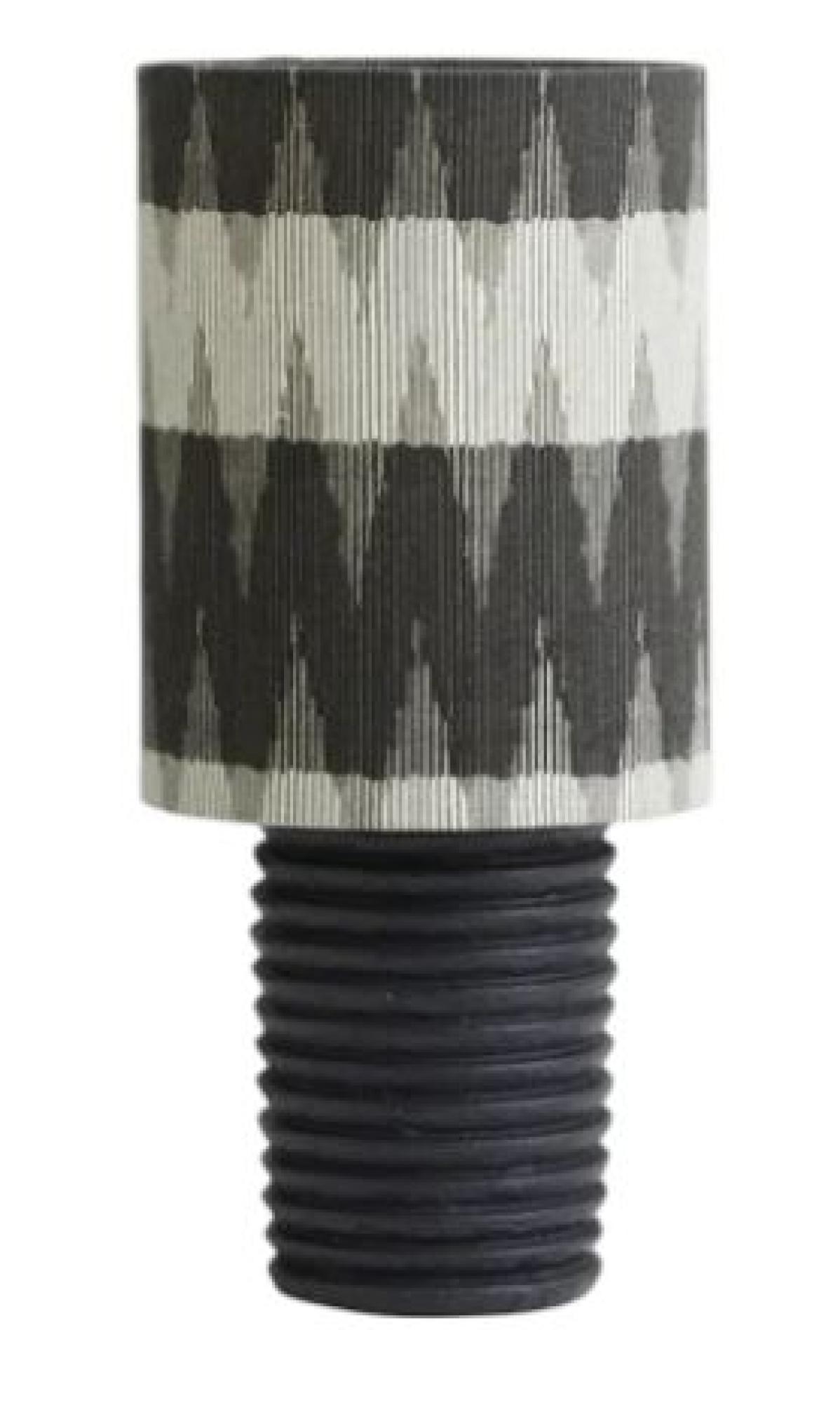 Item Code: 42260 AINE table lamp has a black base of aluminium with a grooved finish. The lamp shade is made of fabric with at rustic pattern. The lamp has an on/off switch and a 200 cm long black fabric cord. Socket size: E27 Max Watt: 40W.