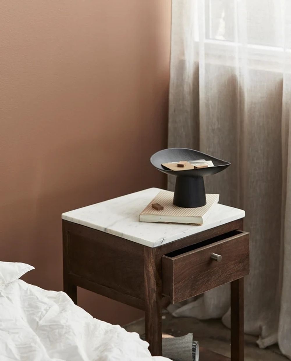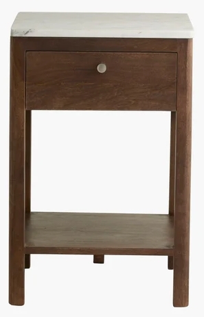 Item Code: 6725 BILLE nightstand is made of mango wood with a marble top plate. BILLE has a drawer for storage with a small metal knot in brass finish. Use BILLE in your bedroom setting or as a side table.This is a Made to Order itemAll Made to Order items are manufactured as per the order supplied by you.We are unable to accept cancellation or accept any extra cost that may incur due to wrong information provided by you at the time you placed the order.We will confirm all sizes/colours/finishes in written email (order confirmation) with you before going ahead with production of your order.