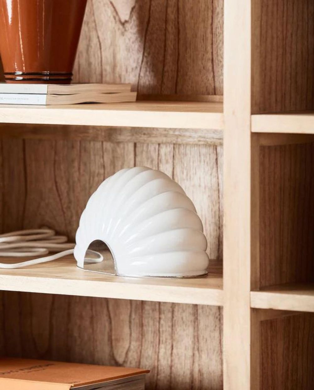 Item Code: 4059 CHIA table lamp is made of glass with a chrome detail. The lamp's sculptural arch, with its grooves, references a seashell. It is designed with a milky white glass shade that emits a soft diffuse light. The lamp's base is crafted in chrome, adding a touch of elegance. With its organic form and subdued light source, the lamp appears as both a sculpture and a lamp in your home. The lamp comes with a 2-meter white fabric cord. Socket size: E14 Max Watt: 40.