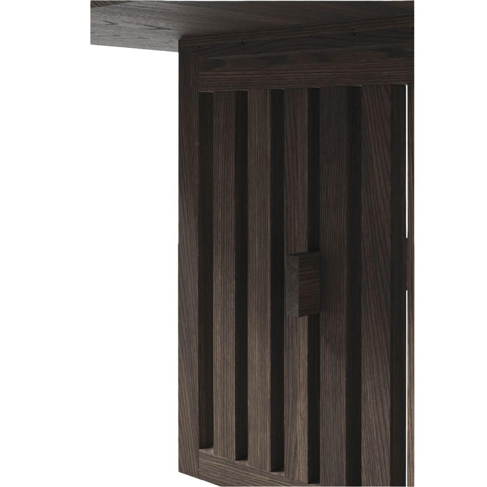 Item Code: AA105 Abigail's Batten range takes inspiration from the Arts & Crafts movement, updating it with contrasting Zebrano veneer and stained Ash. Beautifully mitred cabinets are cradled in supportive, solid Ash frames whilst the slatted panels offer a glimpse of artefacts stored within.
