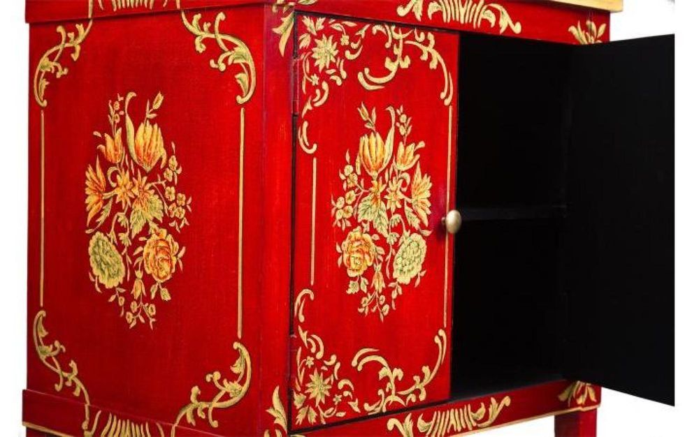 Meerut Red Floral Design 2 Door Bedside Cabinet