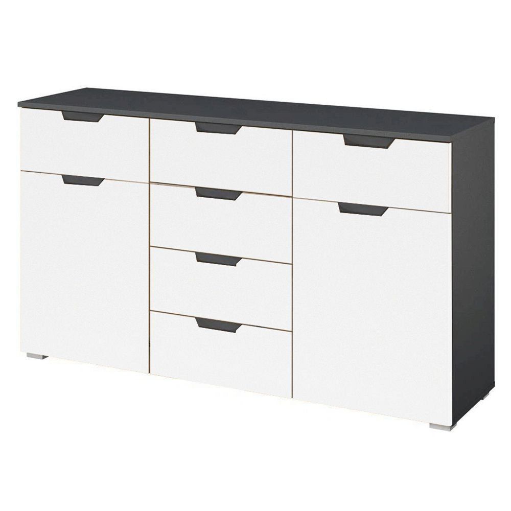Aditio Medium Sideboard - 120cm - 2 Door - 6 Drawer - Metallic Dark Grey & Alpine White
