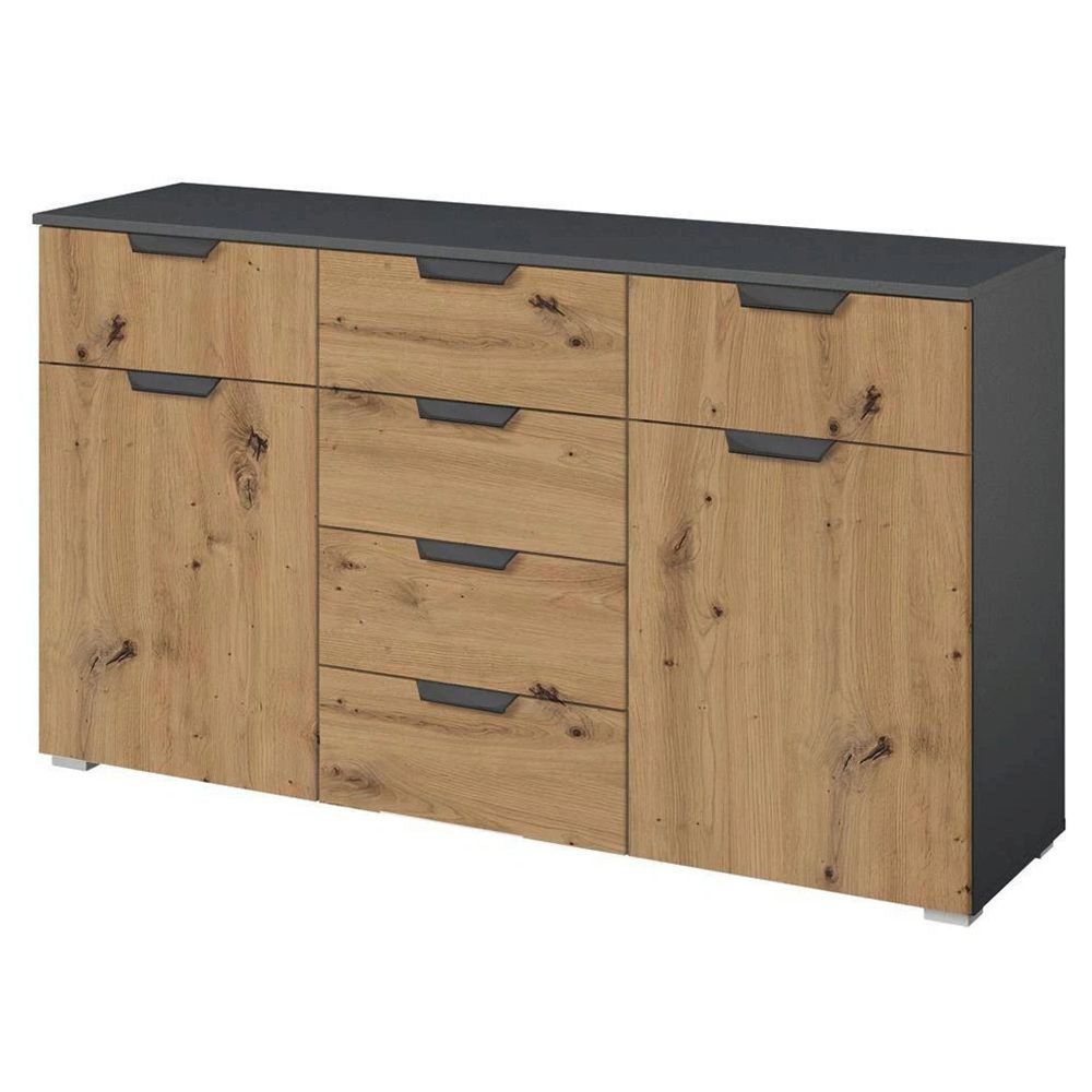 Aditio Medium Sideboard - 120cm - 2 Door - 6 Drawer - Metallic Dark Grey & Artisan Oak