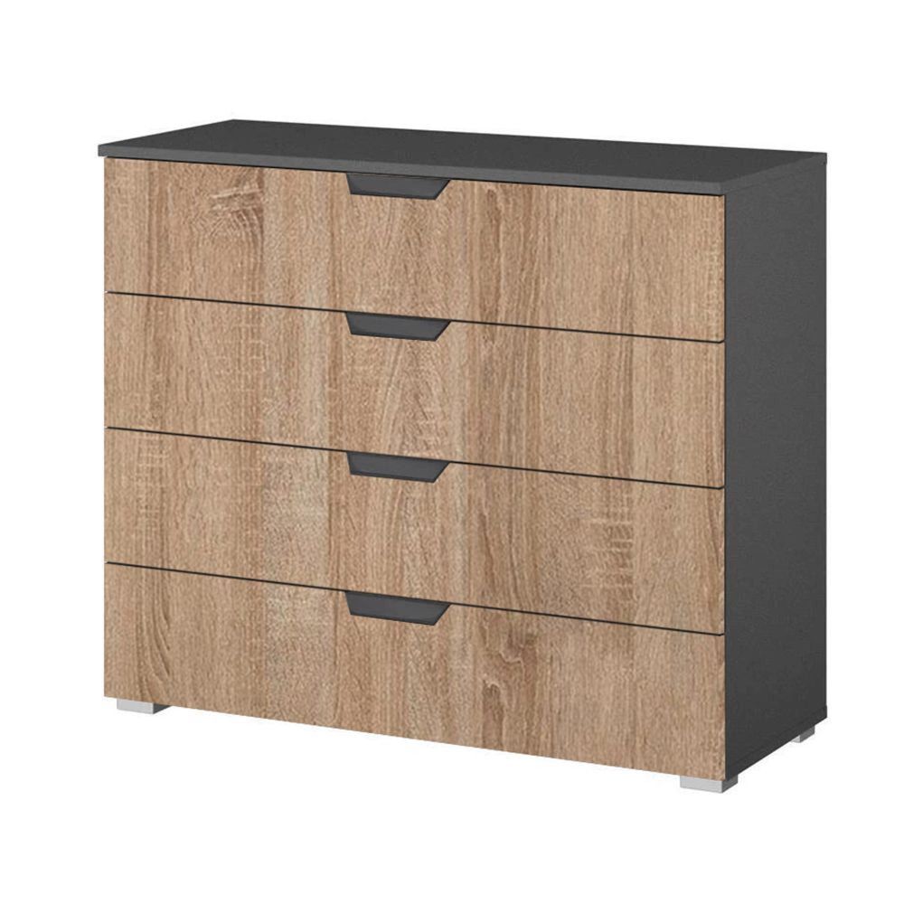 Aditio Wide Chest - 4 Drawer - Metallic Dark Grey & Sonoma Oak