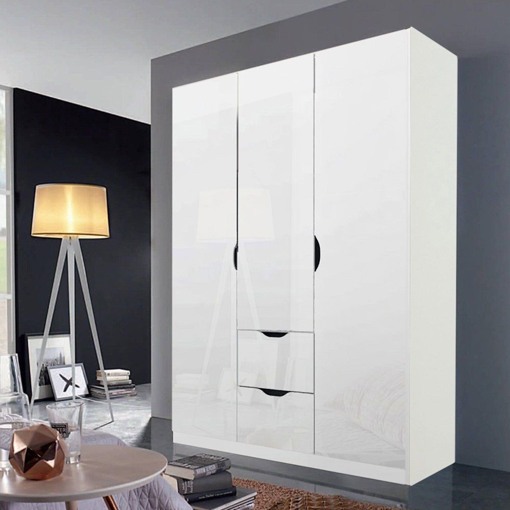 Arnstein Wardrobe - 136cm - 3 Door - 2 Drawer - Alpine White & White High Gloss