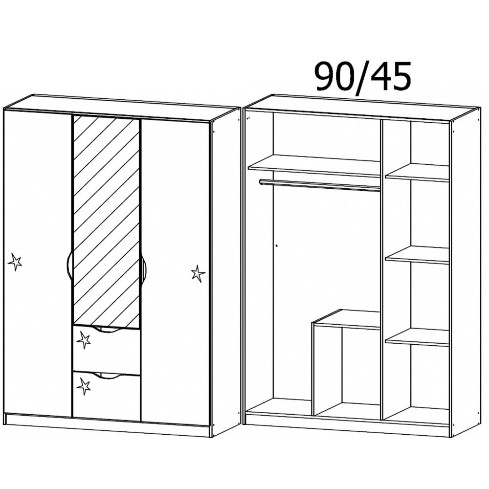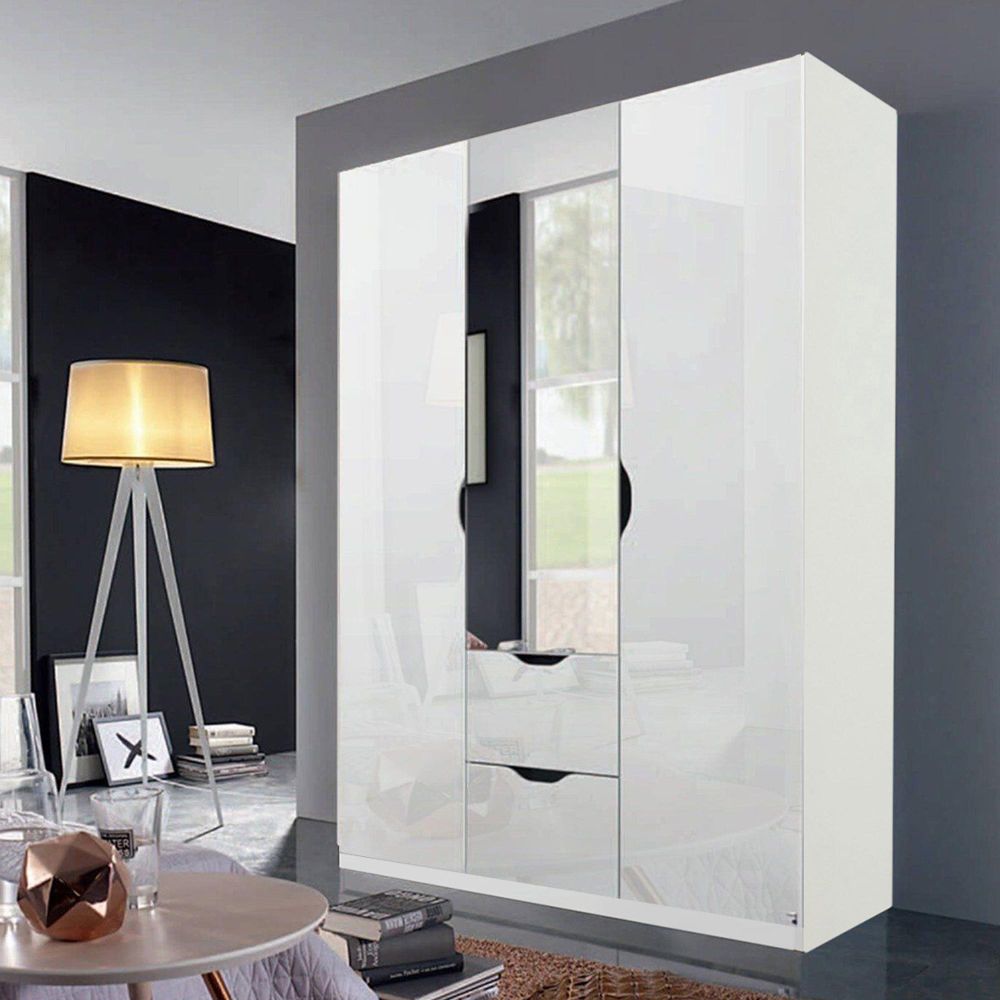 Arnstein Wardrobe - 136cm - 3 Door - Combi - Alpine White & White High Gloss