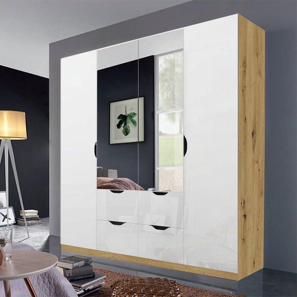 Arnstein Wardrobe - 181cm - 4 Door - Combi - Artisan Oak & White High Gloss