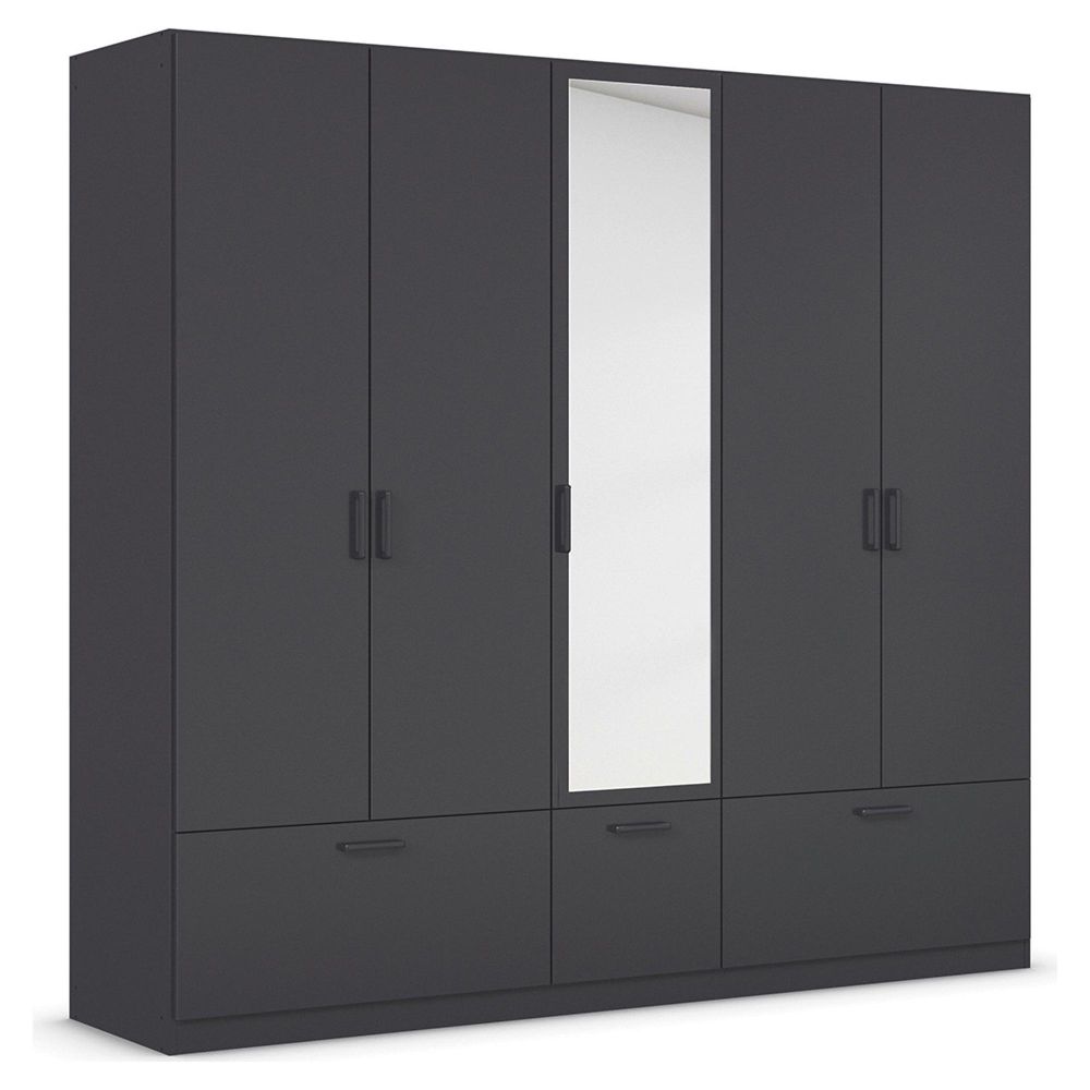 Bari Wardrobe - 226cm - 5 Door - Combi - 3 Drawer - Metallic Grey