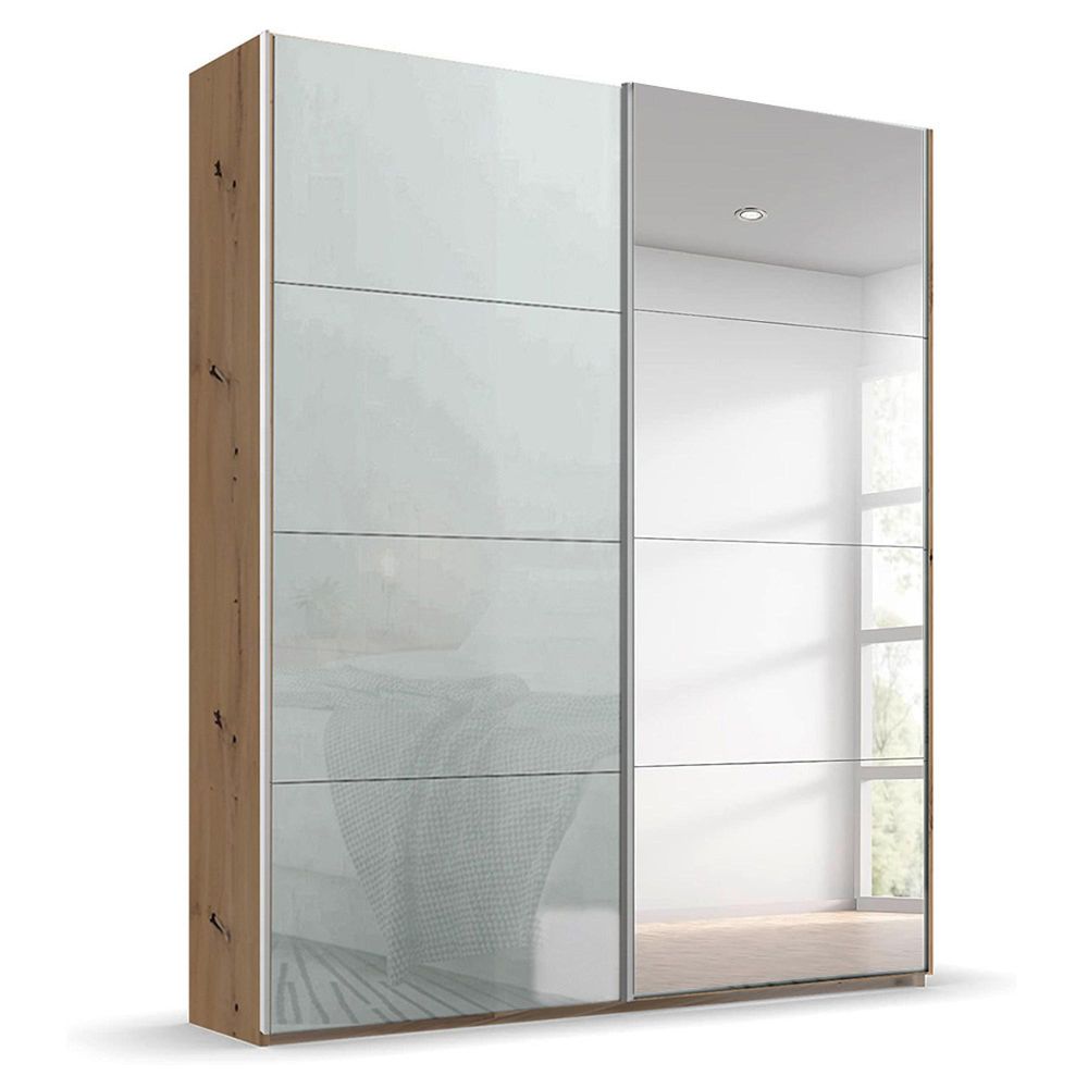 Beluga Extra Sliding Wardrobe - 137cm - 2 Door - Mirror - Artisan Oak & Silk Grey Glass