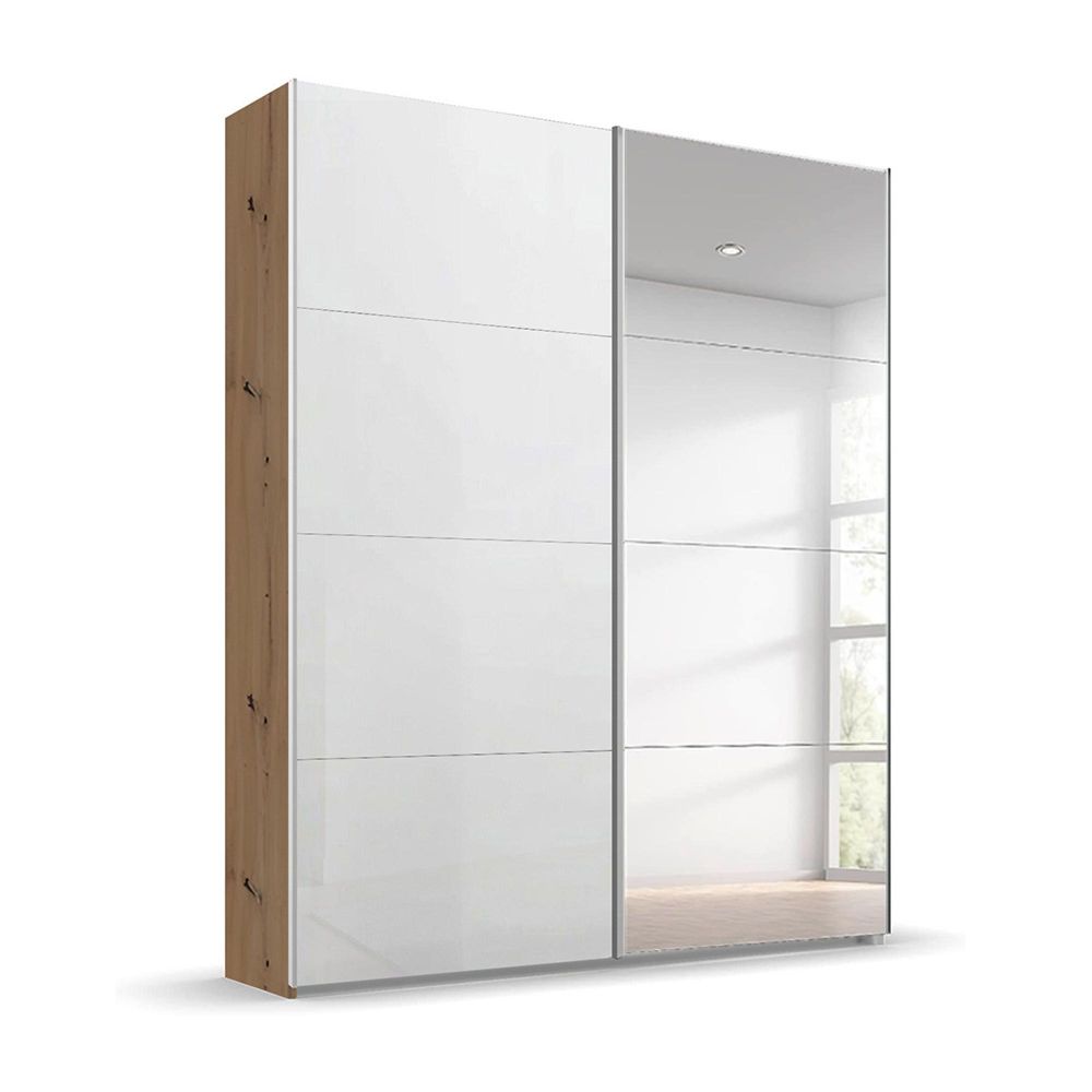 Beluga Extra Sliding Wardrobe - 137cm - 2 Door - Mirror - Artisan Oak & White High Gloss
