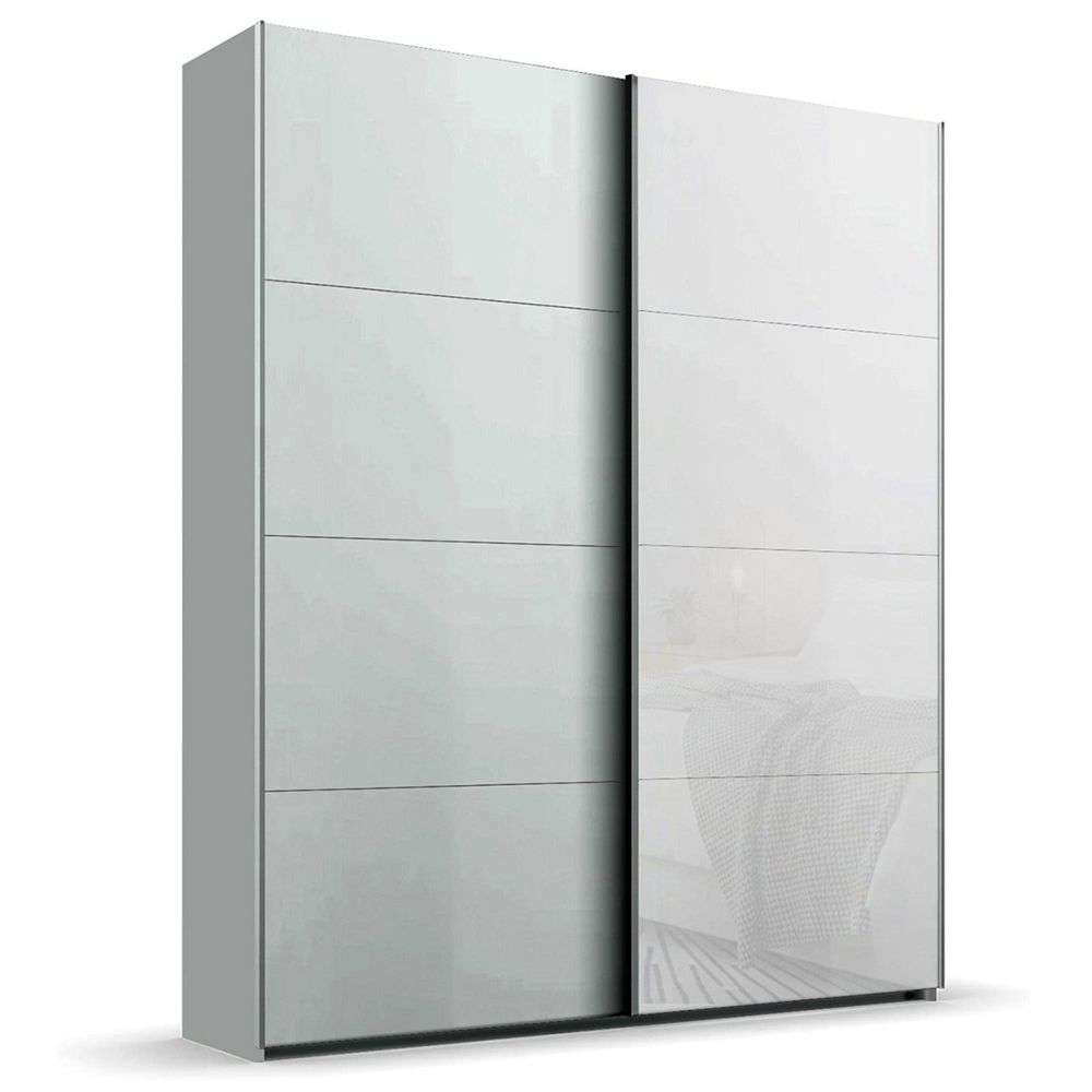 Beluga Extra Sliding Wardrobe - 137cm - 2 Door - Silk Grey & White Glass Front