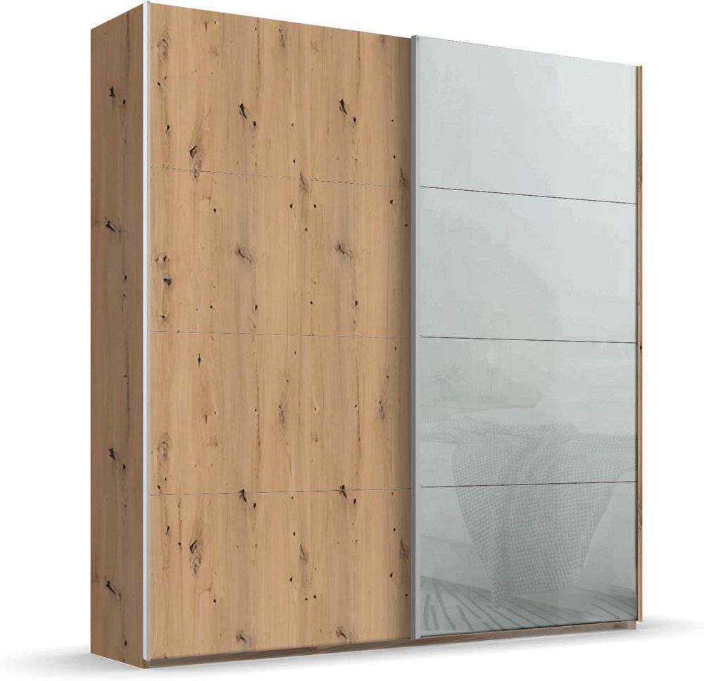 Beluga Extra Sliding Wardrobe - 181cm - 2 Door - Artisan Oak & Silk Grey Glass Front