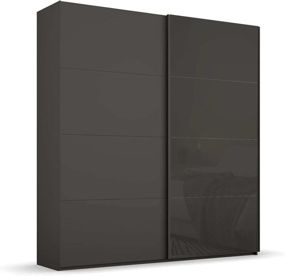 Beluga Extra Sliding Wardrobe - 181cm - 2 Door - Graphite & Basalt Glass Front