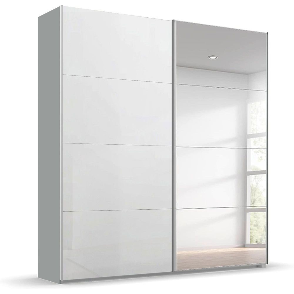 Beluga Extra Sliding Wardrobe - 181cm - 2 Door - Mirror - Silk Grey & White High Gloss
