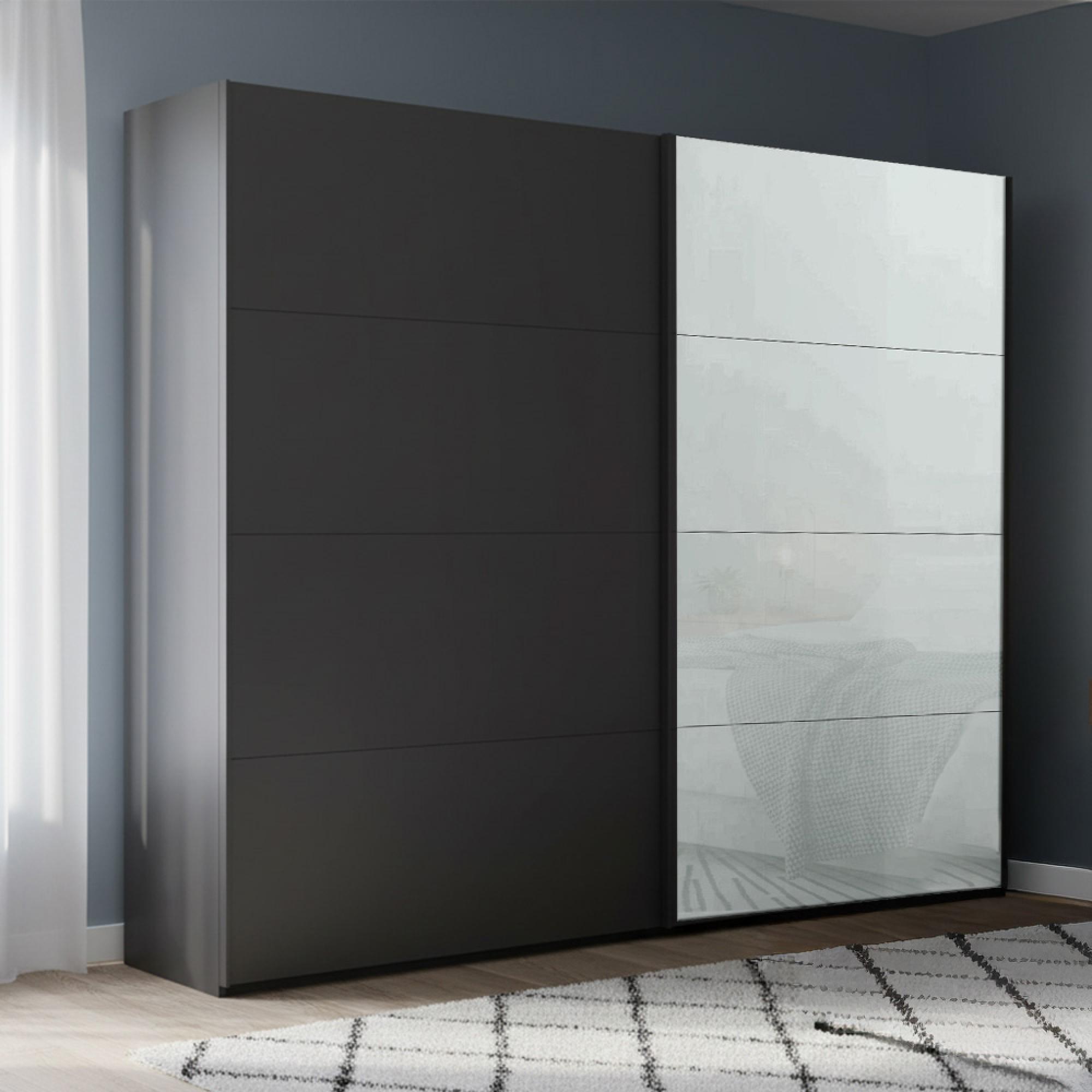 Beluga Extra Sliding Wardrobe - 226cm - 2 Door - Graphite & Silk Grey Glass Front