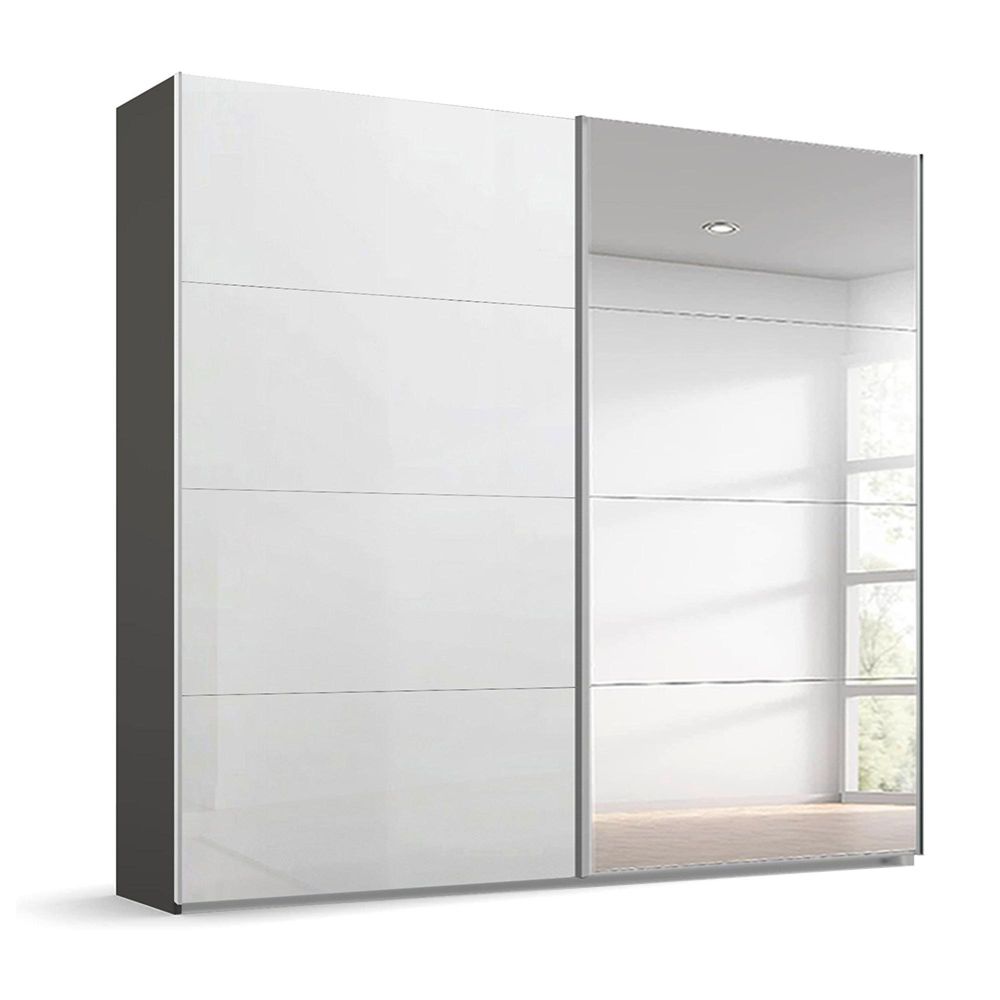 Beluga Extra Sliding Wardrobe - 226cm - 2 Door - Mirror - Graphite & White High Gloss