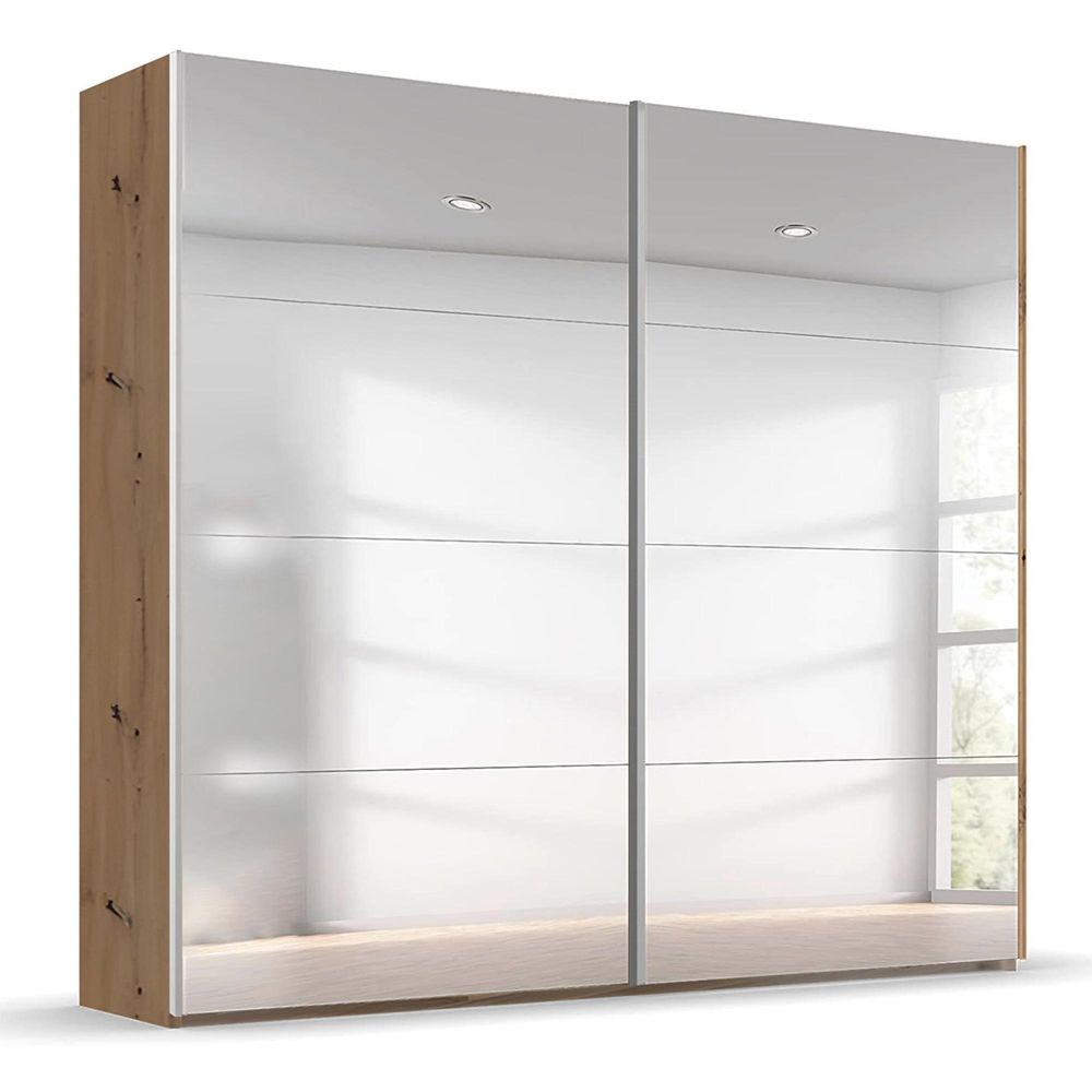 Beluga Extra Sliding Wardrobe - 226cm - 2 Door - Mirrored - Artisan Oak