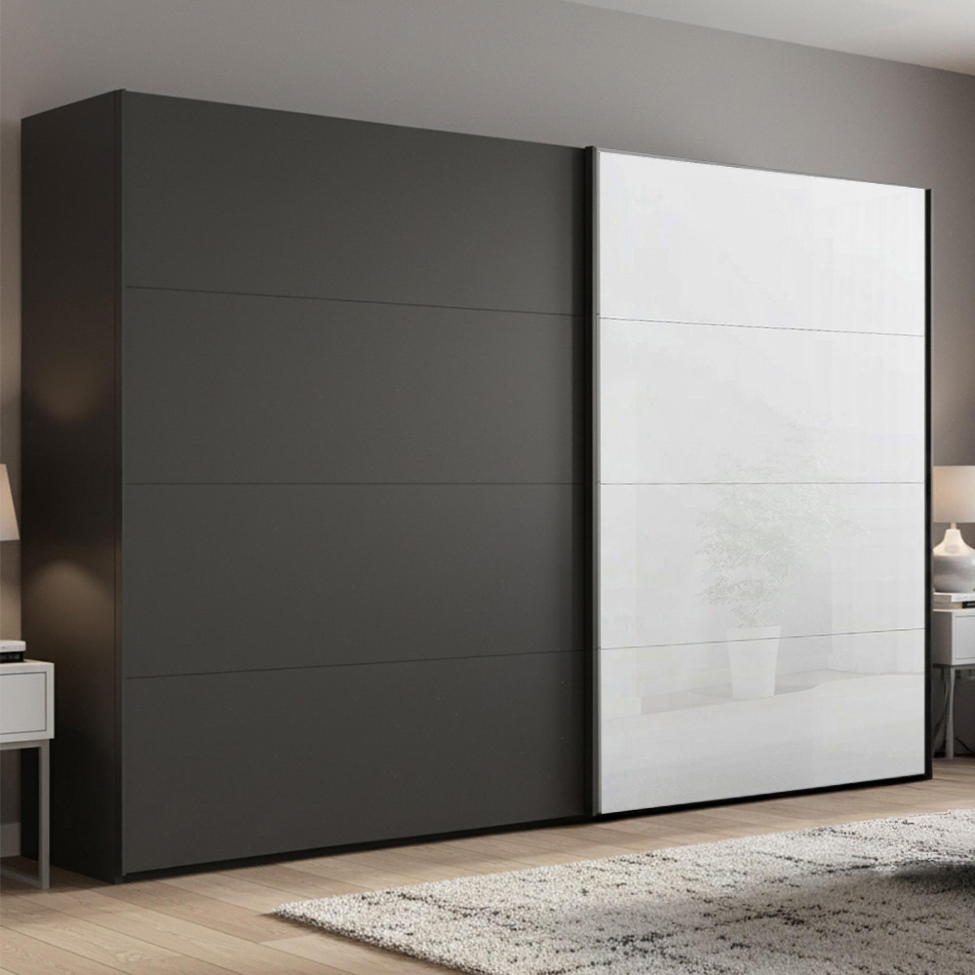 Beluga Extra Sliding Wardrobe - 226cm - 2 Door - White High Gloss & Graphite Front