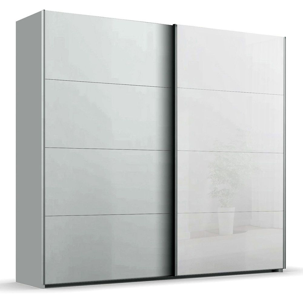 Beluga Extra Sliding Wardrobe - 226cm - 2 Door - White High Gloss & Silk Grey Front