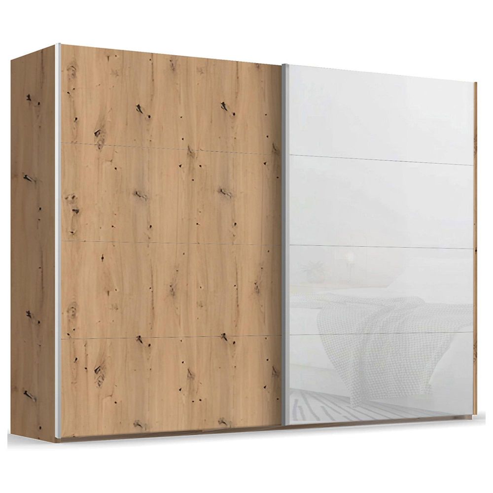 Beluga Extra Sliding Wardrobe - 271cm - 2 Door - Artisan Oak & White Glass Front