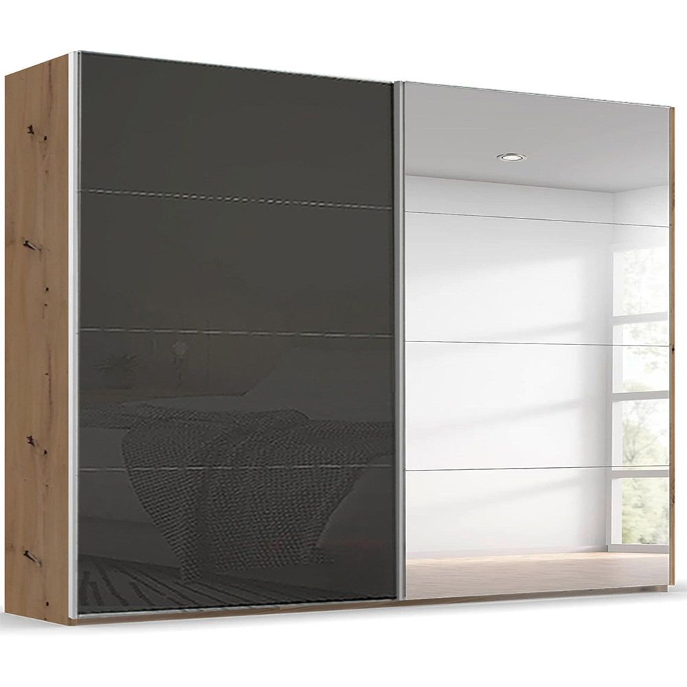 Beluga Extra Sliding Wardrobe - 271cm - 2 Door - Mirror - Artisan Oak & Basalt Glass