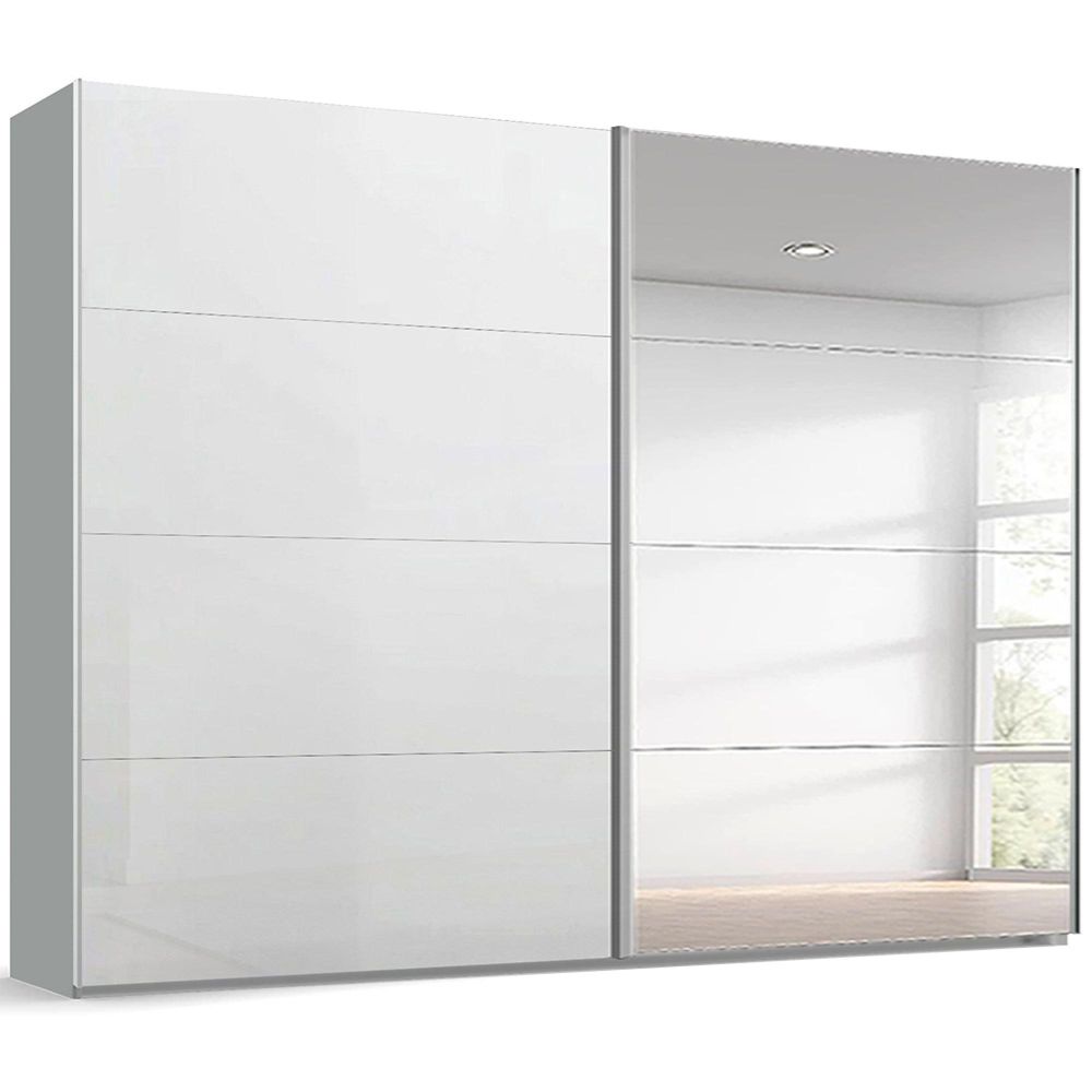 Beluga Extra Sliding Wardrobe - 271cm - 2 Door - Mirror - Silk Grey & White High Gloss