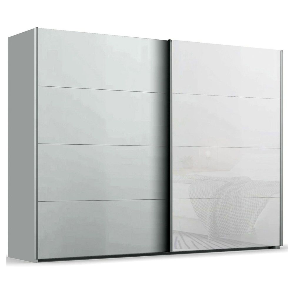 Beluga Extra Sliding Wardrobe - 271cm - 2 Door - Silk Grey & White Glass Front