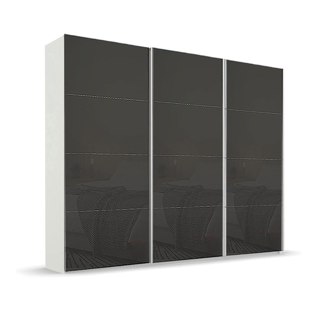 Beluga Extra Sliding Wardrobe - 271cm - 3 Door - Alpine White & Basalt Glass