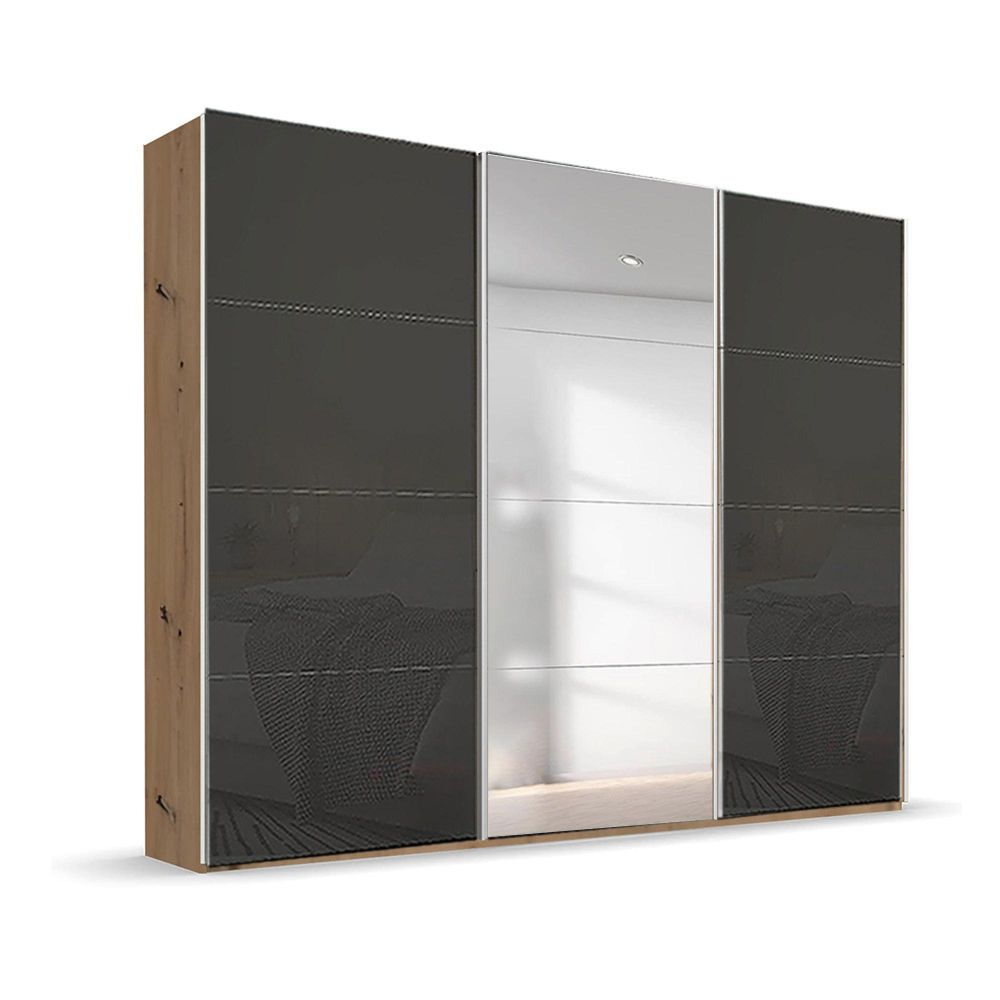 Beluga Extra Sliding Wardrobe - 271cm - 3 Door - Mirror - Artisan Oak & Basalt Glass
